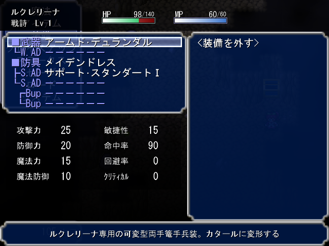 装備欄が増えて、サポート装備、バックアップ装備の